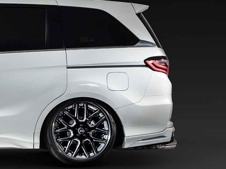 ボディーラインを継承した一体感ある造形部でAラインをセンターに配置した左右3分割となる立体的なデザインで上質感を演出しました。ワイドなLEDローマウントもオプション装着により存在感を与えます。