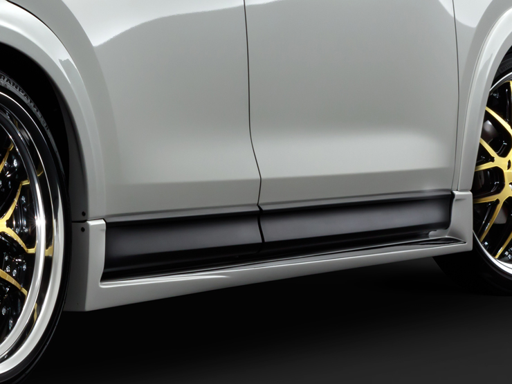 フロントからリヤへと自然な繋がりを持たせ、フロントバンパーリップ部を 継承したデザインを取り入れるシンプルなデザイン、ドアパネルの立体感を活かした一体感ある上質なディテールを与えます。