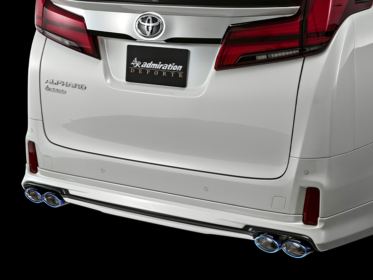 | 備考 | ※ admirationエアロ装着車専用 ※ 装着時アンダーカバーを取り外す必要がございます。 ※ 排気量・駆動方式により別設定。 【チタンハイブリッドテール焼き色について】 ※チタン本来の風合いにこだわり一本一本手作業にて焼き入れをしている為、各テール焼き色にはバラつきがございます。 また、チタン特有の経年変化による色あせがございます。 |