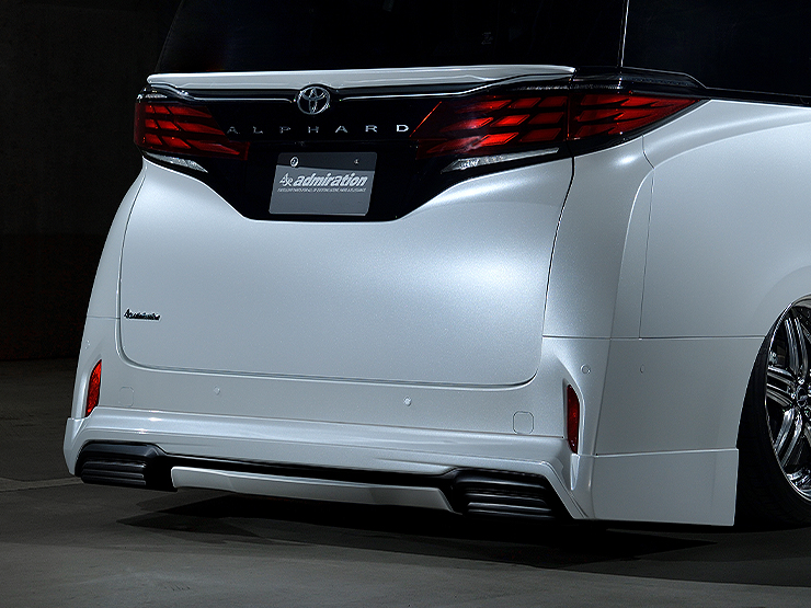 | 備考 | ※ マフラーエクステンション要同時装着。 ※ 純正リフレクター下部に商品が覆いかぶさる為、取付後リフレクターの脱着が不可となります。 ※ デモカーは2色塗分け塗装:■ボディーカラー:プラチナホワイトパールマイカ〈089〉■アクセントカラー:ブラック〈202〉 |