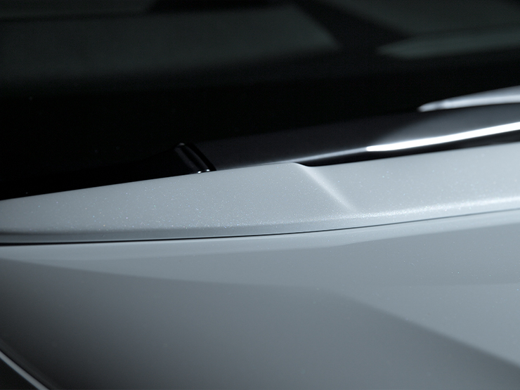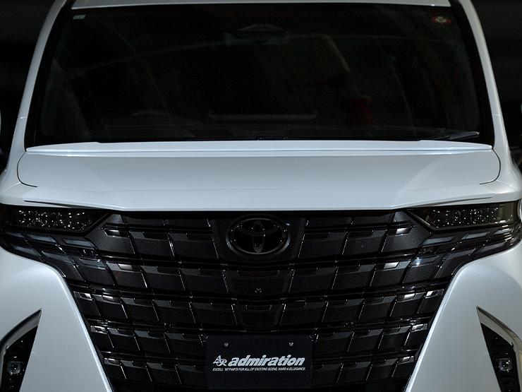 センター部に段差を与えた造形美でフロントビューに適度なアクセントでボリューム感をプラス。またボンネットを後部の長さ、高さが出る事でワイパーなどが隠れやすくなりドレスアップ性もさらに高まります。