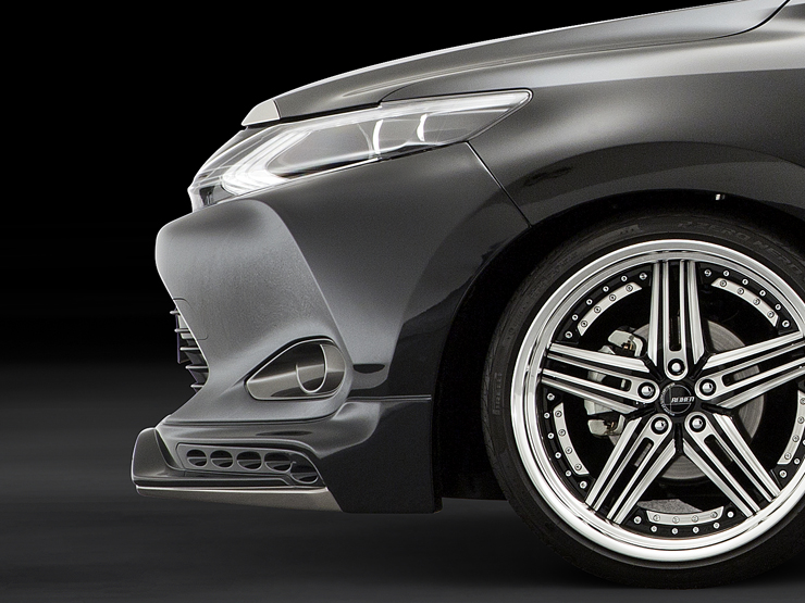 躍動感ある3Dデザインで上質感を与え、立体的な造形美を採用、センター部にダクトを取り入れ、左右には異形5連LEDスポットをインストールし存在感を際立てています。