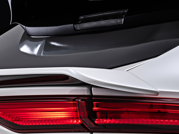 ボディーサイド部まで回り込んだフローティングデザインを採用したゲートウイング。リヤビューのアクセントになりながらもスポーティーかつ上質感ある装いを演出します。このパーツでハリアーのリヤビューの印象が大きく変わるとも言ってもいいマストアイテム。