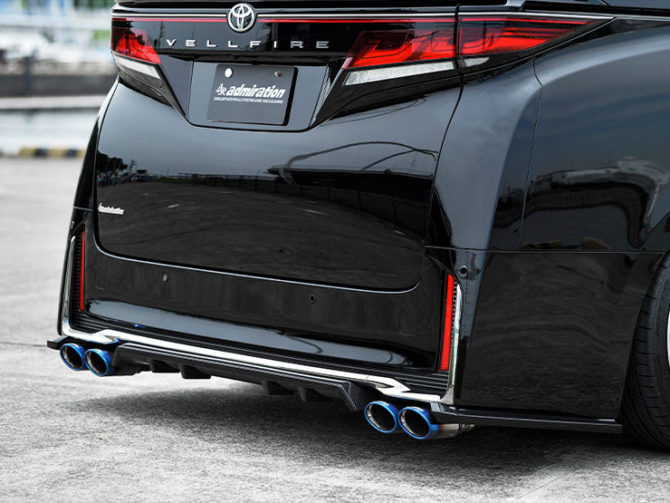 フロント同様フラップ基調としたディフューザータイプを採用。3PS構成としセンター部には4本のディフューザーが低重心フォルムを演出し存在感を際立てます。