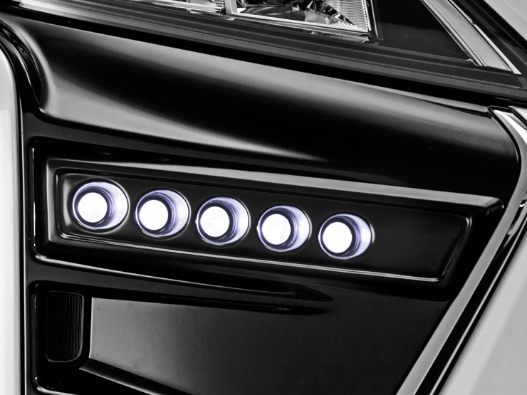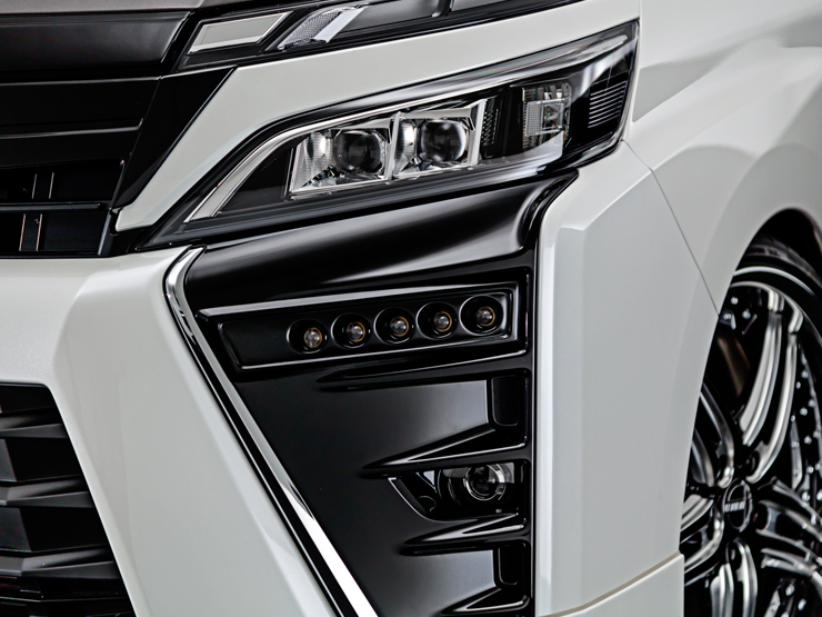 球面レンズを採用し、立体感を与えた質感向上とフラットレンズを上回る光の拡散性を最大限に高め、拘りの高品質LEDスポットです。純正バンパーに対応し、5連スポットの連続した輝きがフロントフェイスの存在感を一層引き立てます。