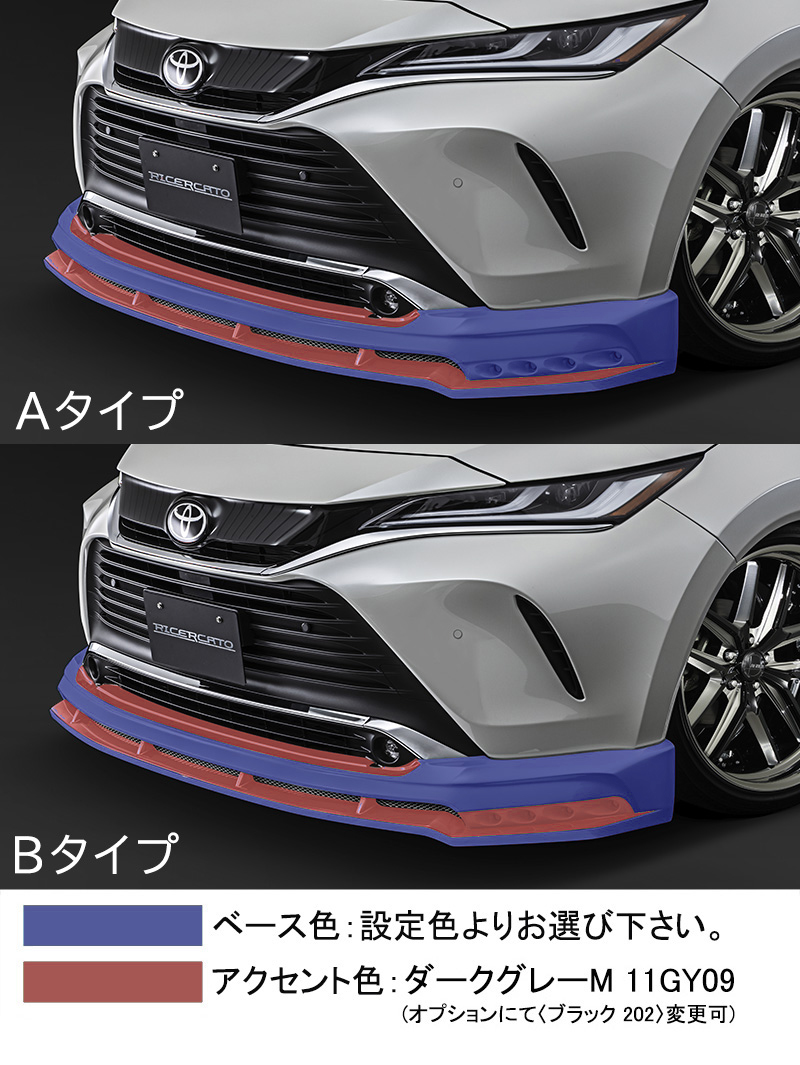 | 塗装済 | [設定色]<プラチナホワイトパールマイカ089><ホワイトパールクリスタルシャイン070><ブラック202><プレシャスブラックパール219> [単色]<プラチナホワイトパールマイカ089><ホワイトパールクリスタルシャイン070><ブラック202><プレシャスブラックパール219> [2色塗分け]【Aタイプ】・【Bタイプ】よりお選び下さい。 アクセント部:基本仕様〈ダークグレーM 11GY09〉、オプションにて〈ブラック 202〉変更可。 |